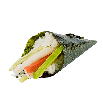 Avocado, surimi, cetriolo, maionese e sesamo.
